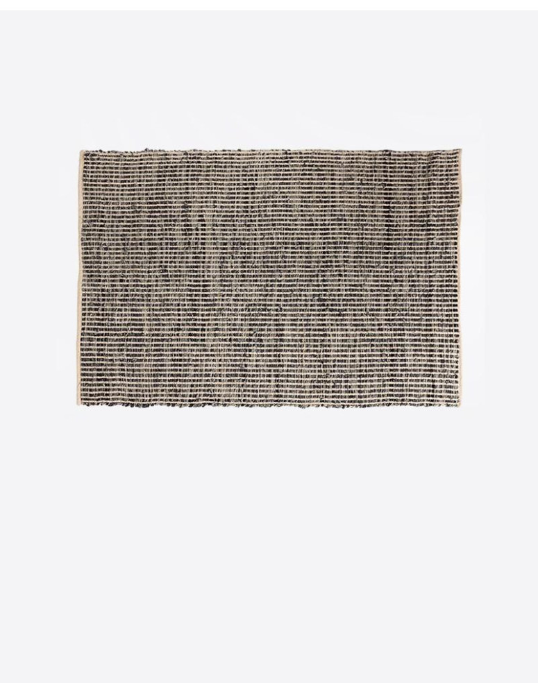 Our Kochar rectangular rug has a nice pattern in grey and raw tones. Made of cotton, it is simple and neutral, perfect to combine with all kinds of aesthetics.
